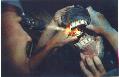 Pop! Out comes a two-inch-long, blackish tooth.