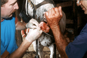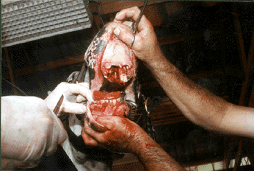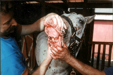 2 1/2 year old Appaloosa gelding with a bilateral incisive bone fracture due to a training accident. Fernando