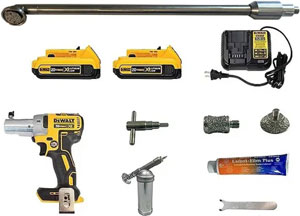 - EzFloat is a battery powered diamond disc float with interchangeable diamond apple core bit and buccal burr. Two long lasting 20V lithium batteries with wall charger, grease gun, disc wrench. Fastest De Walt drill on the market with 3 speed ranges. Easy and safe to use. Disk direction can be changed easily to up or down or any angle. One year warranty; 1 year limited warranty on motor, batteries and shaft. For quick change between apple core and disc, you can purchase an additional shaft for $685. LIGHTWEIGHT - Total weight of EzFloat (as used) is 2kg (4&1/2 pounds).