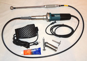 - Powered by reliable and long lasting Makita type motor, with flexible "key" extra-long shaft, plastic foot pedal 120V