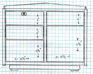 2nd Column - 6" high x 15.5" wide (1), 15.5" high x 15.5" wide (Bucket Drawer)